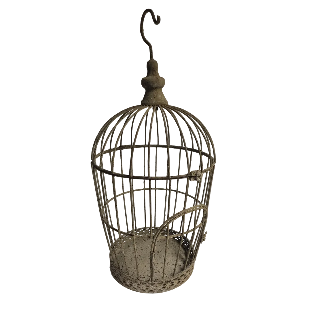 En vacker och dekorativ metallbur med klassiskt formspråk och en mjukt patinerad yta. Den luftiga konstruktionen ger ett lätt och romantiskt uttryck som passar lika fint inomhus som i uterum, växthus eller under tak utomhus.