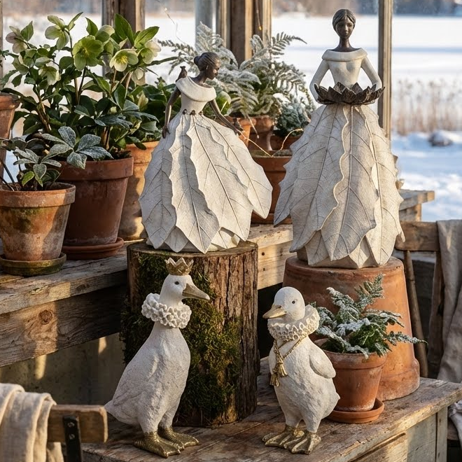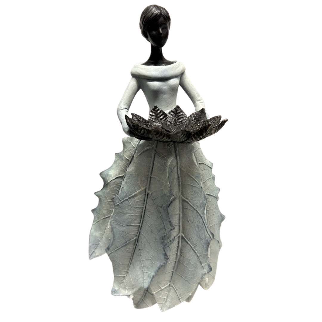 Trädgårdsdamen Dolly med fat 45 CM - Antik vit